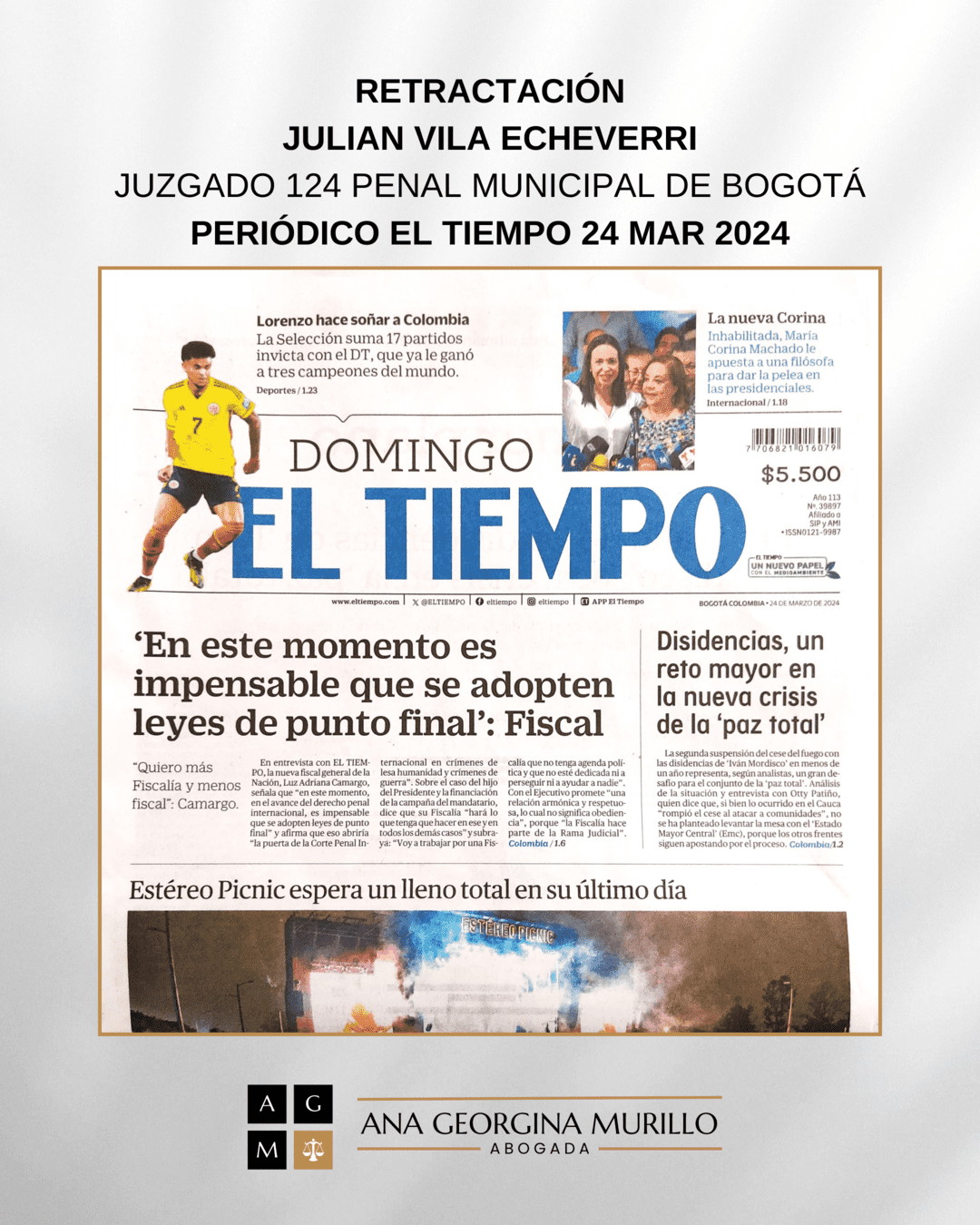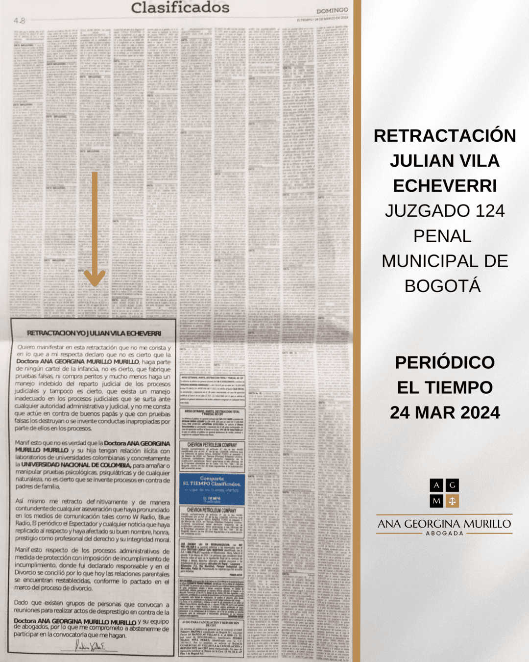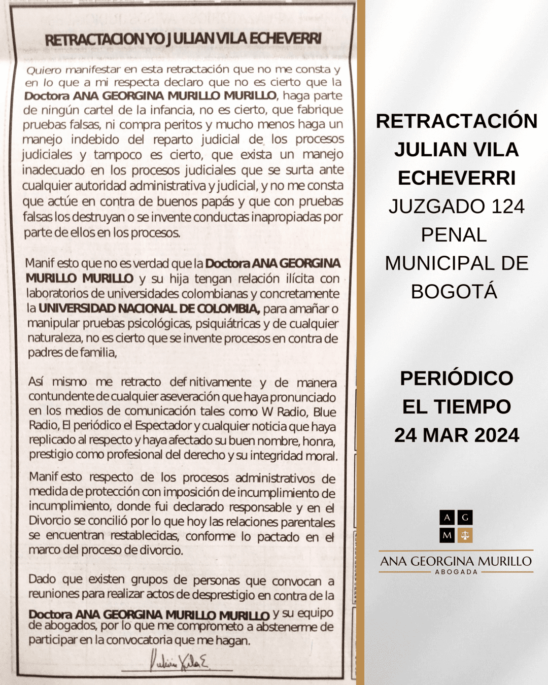 Retractación realizada por el señor Julian Vila Echeverri – Juzgado 124 Penal Municipal de Bogotá